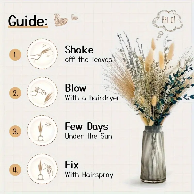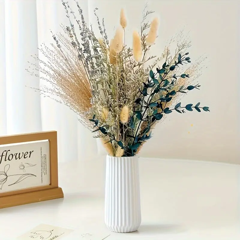 - Inhalt: Verschiedene Trockenblumen und Naturgräser, einschließlich Pampasgras, Lavendel, Schilf und Eukalyptus.